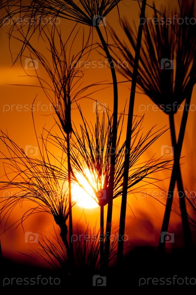 Силуэты папируса на закате