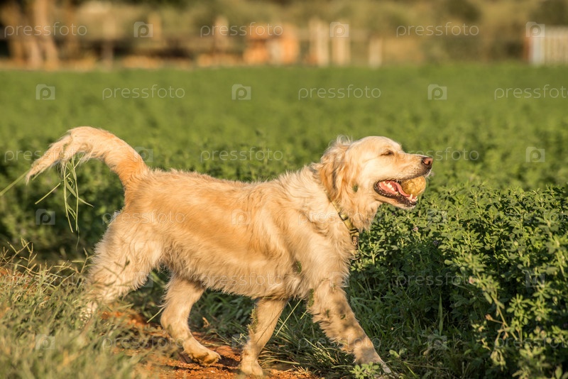 Золотистый ретривер с теннисным мячом