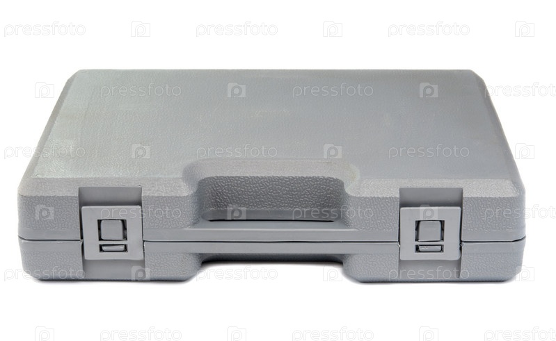 Серый чемодан на белом фоне