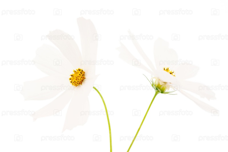 Белые космеи на белом фоне