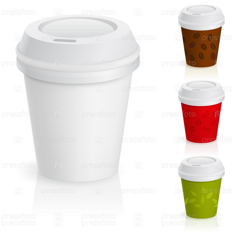Коллекция кофейных стаканов с крышкой на белом фоне