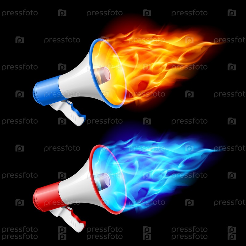 Два пылающих громкоговорителя на черном фоне