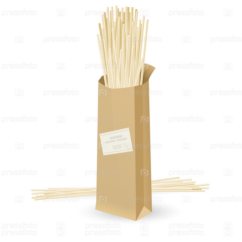 Спагетти в пакете. Иллюстрация на белом фоне