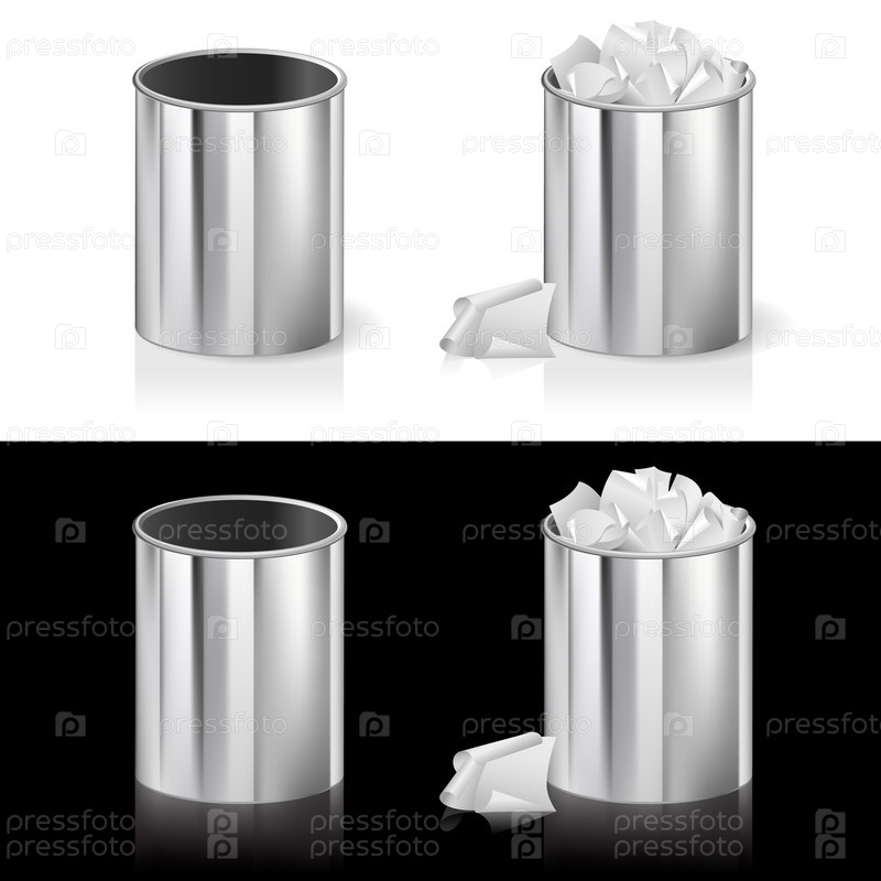 Металлические урны на белом и черном фоне