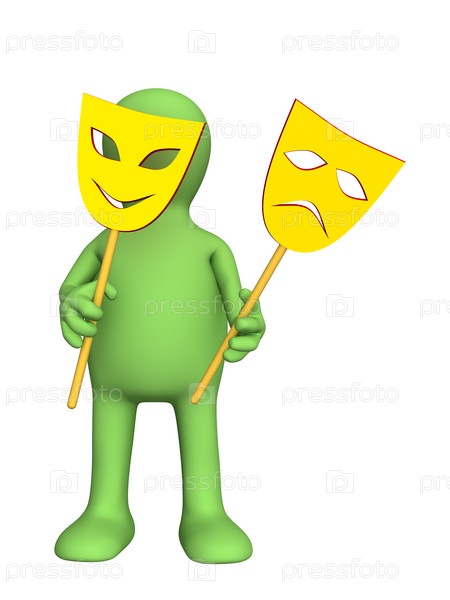 Маленький человек с двумя театральными масками
