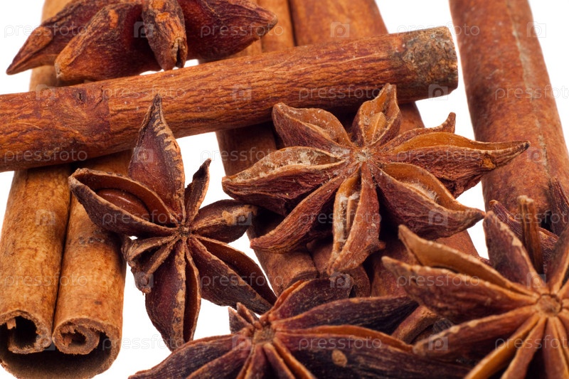 Корица и анис на белом фоне