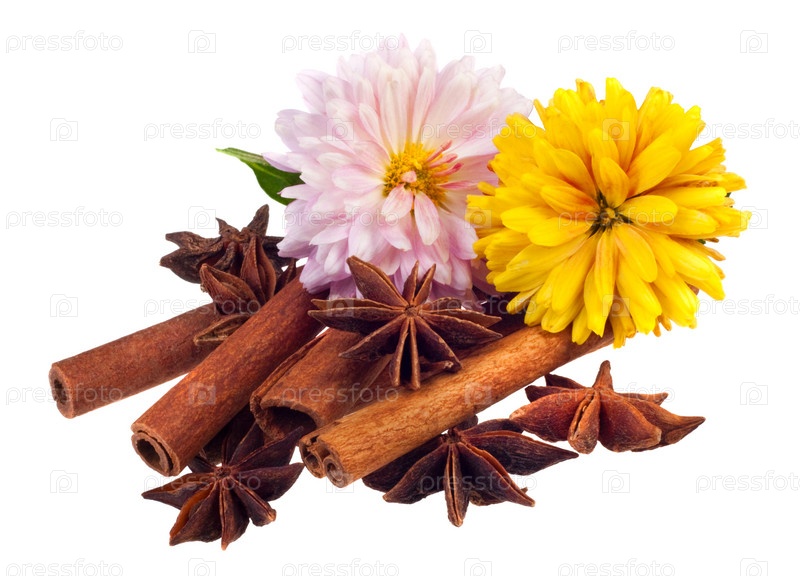 Ароматные специи на белом фоне