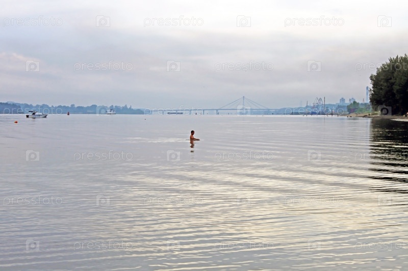 Силуэт купальщика, выходящего из реки