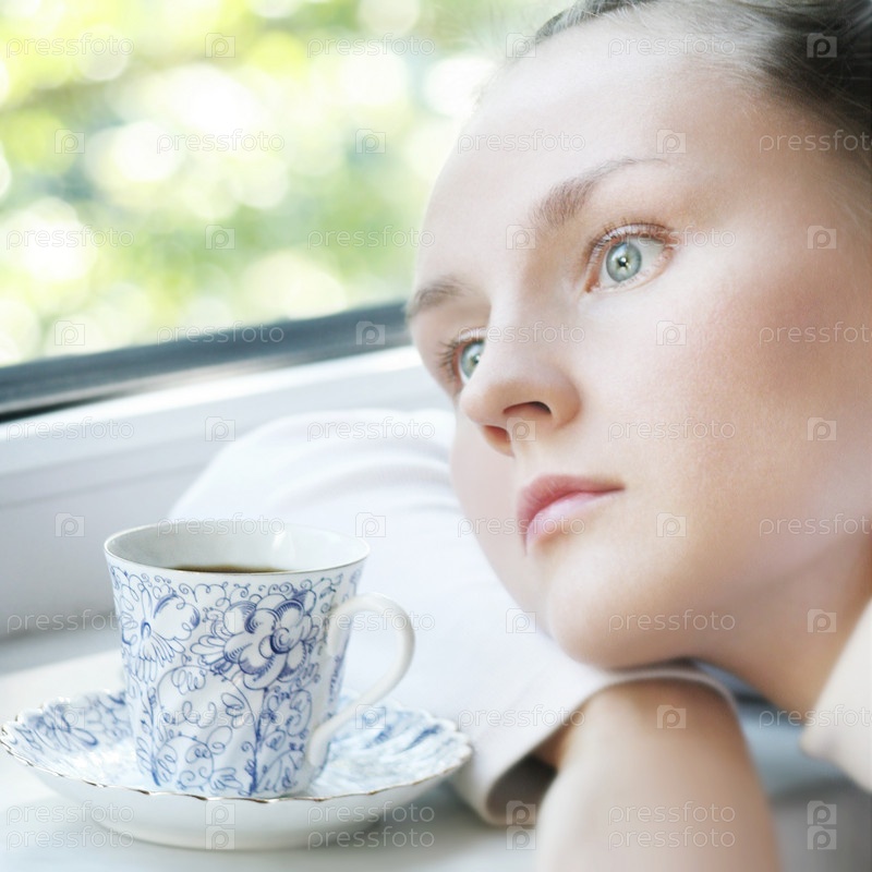 Девушка с отрешенным видом у окна