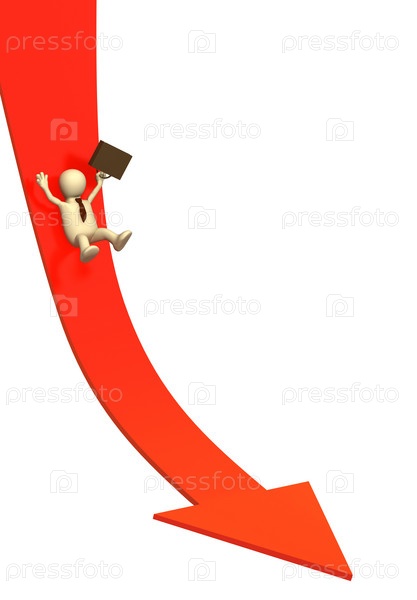 Бизнесмен, скользящий вниз по стрелке