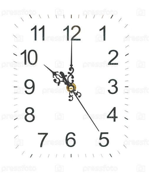 Настенные белые прямоугольные часы. Изолированные на белом фоне. Крупный план