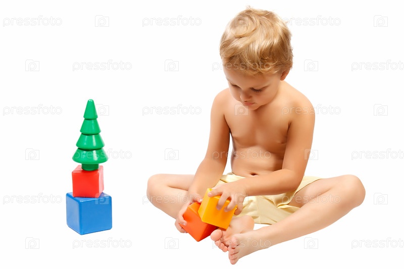Мальчик играет с кубиками