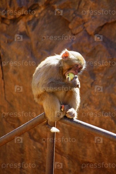 Обезьянка ест яблоко