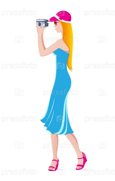 Девушка с видеокамерой. Иллюстрация на белом фоне