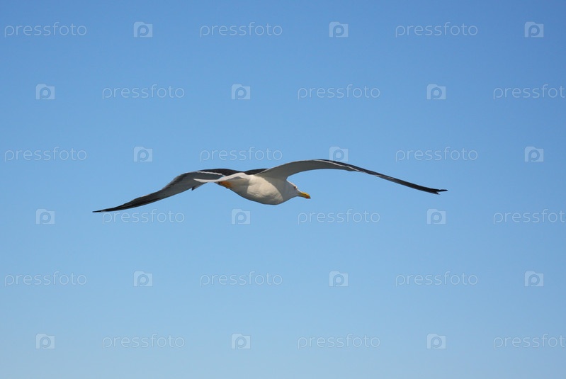 Одинокая чайка в синем небе