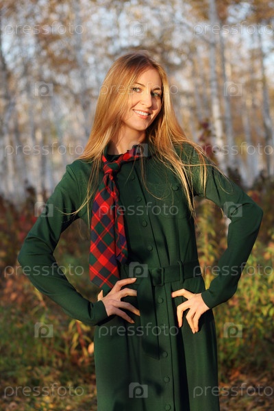 Стильная девушка в осеннем парке вечером