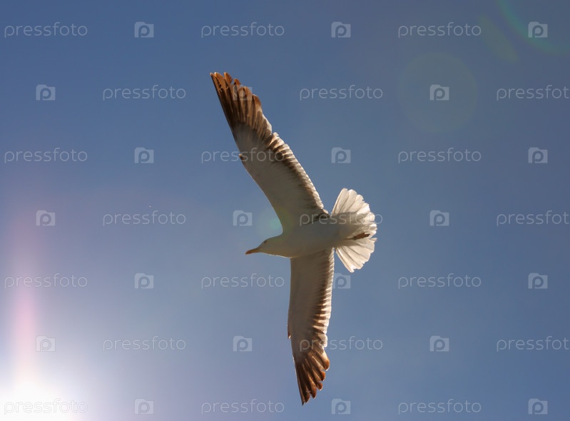 Чайка парит в синем небе