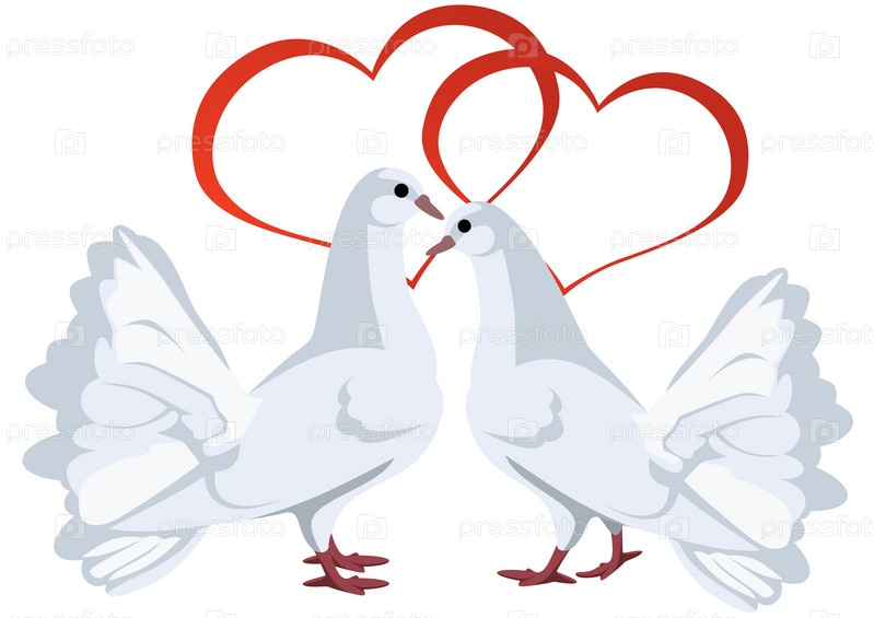 Голуби и сердца на белом фоне