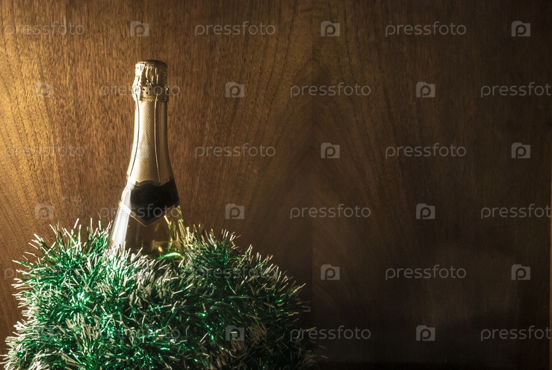 Бутылка шампанского и мишура