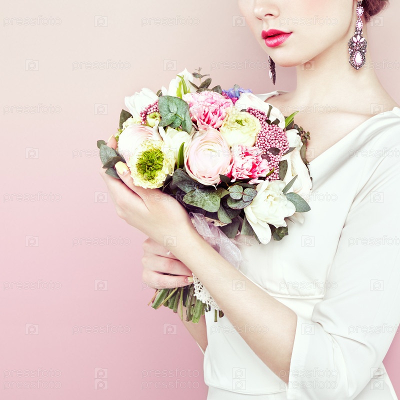 Женщина с букетом цветов в руках