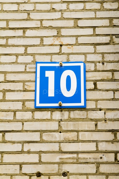 Табличка с цифрой 10 на стене дома