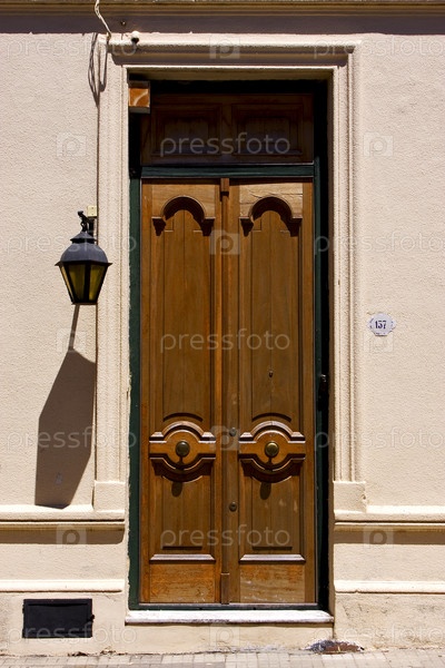 Старые двери и уличный фонарь