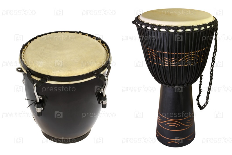 Этнические африканские барабаны на белом фоне