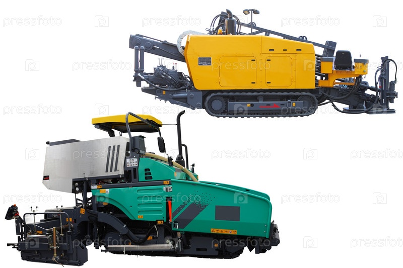 Две машины для укладки асфальта на белом фоне