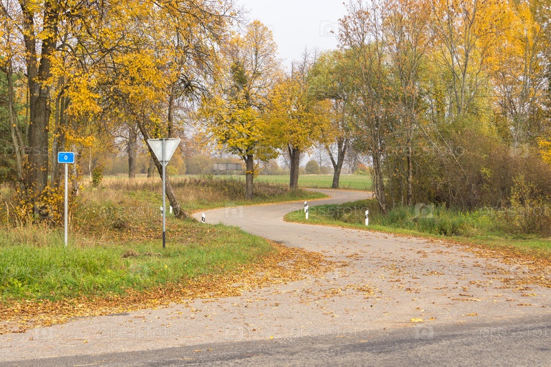 Извилистая дорога с указателем