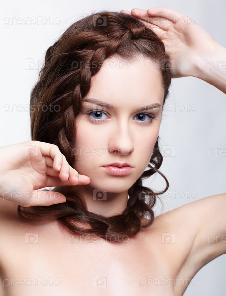 Юная брюнетка с творческой прической