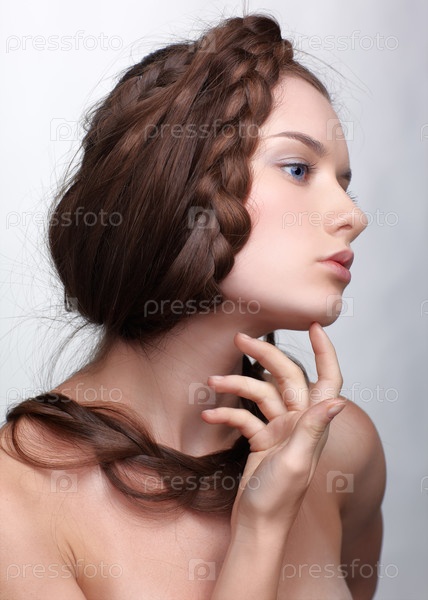 Юная брюнетка с творческой прической