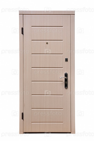 Деревянная дверь на белом фоне