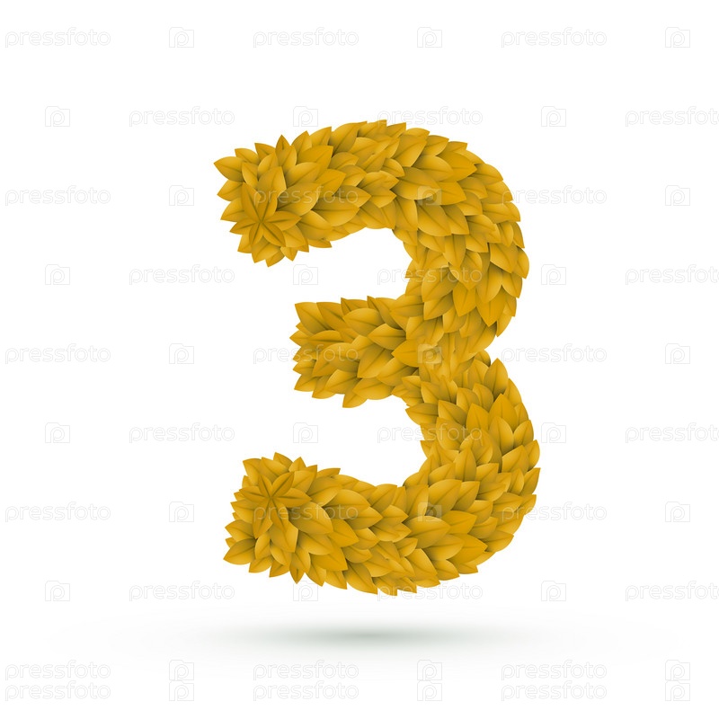 Цифра 3 из желтых листьев