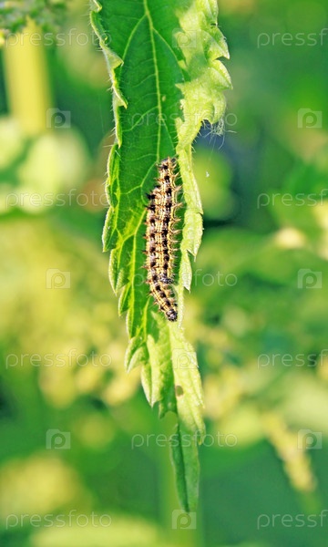 Две гусеницы на листке крапивы