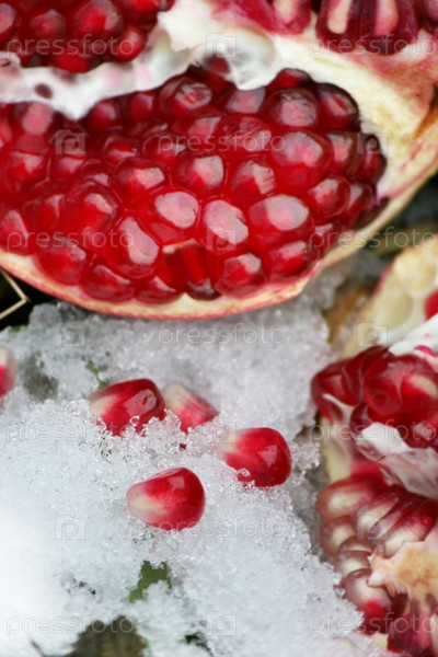 Гранат и снег крупным планом