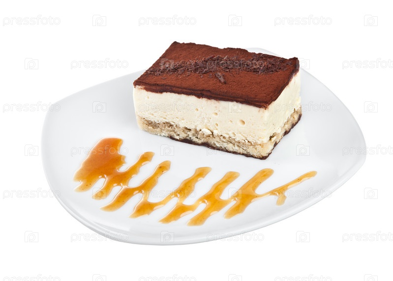 Десерт: сладкий пирог на тарелке, на белом фоне