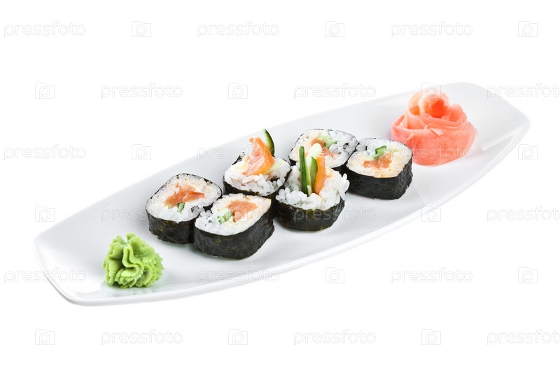 Японская кухня, ролл Ясай, белый фон