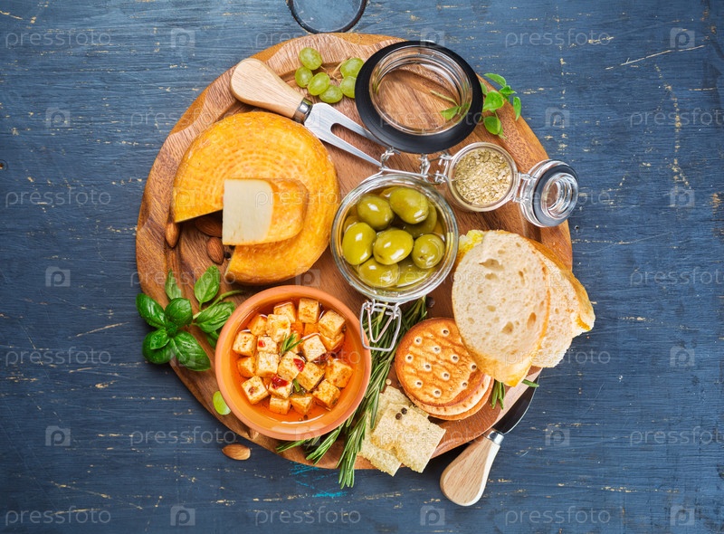 Сыр, оливки и сухарики