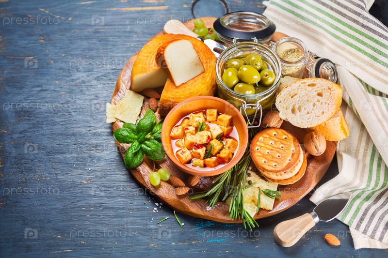 Сыр, оливки и сухарики