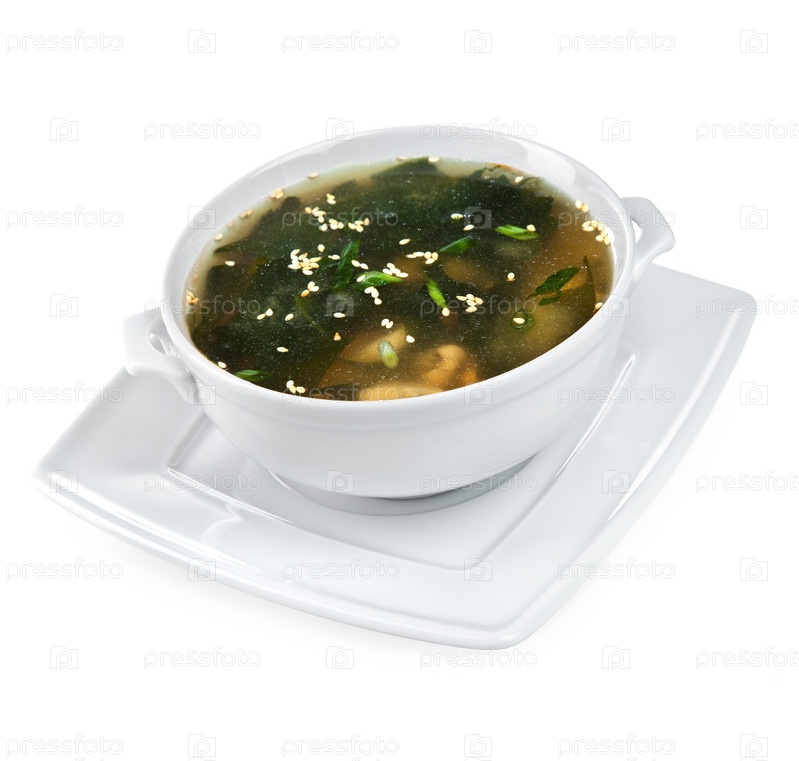 Суп из морепродуктов на белом фоне
