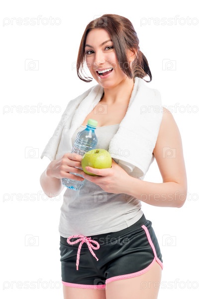 Молодая женщина, держащая яблоко