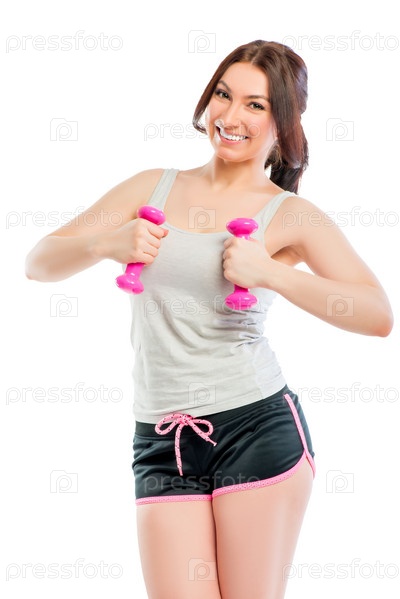 Брюнетка с гантелями