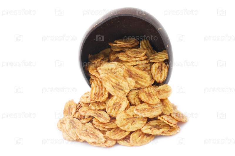 Сушеные бананы в тарелке на белом фоне