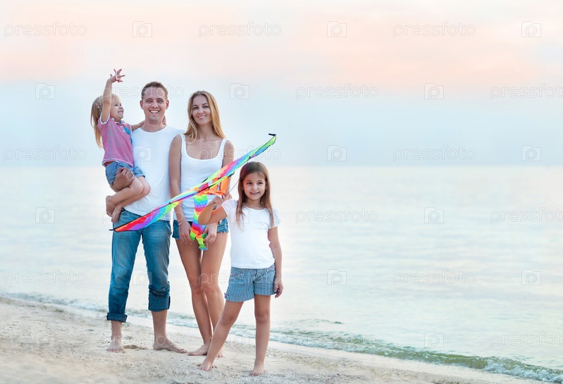 Семья запускает воздушного змея