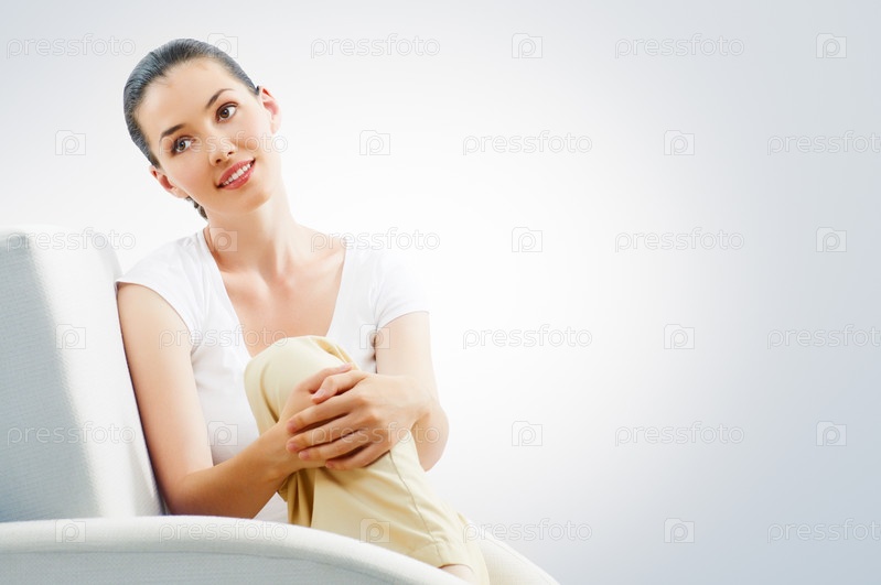 Девушка сидит на диване