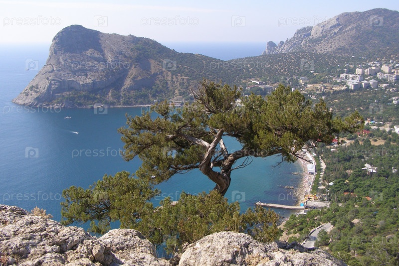 Хвойное дерево на вершине прибрежной горы