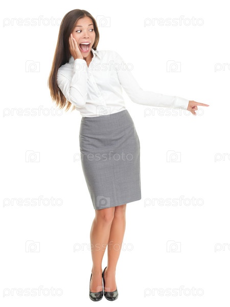 Удивленная женщина, стоящая изолированная на белом фоне