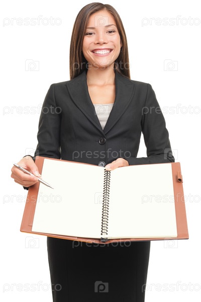Предприниматель показывает пустой Блокнот