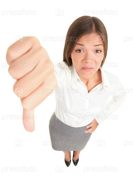 Палец вниз женщина на белом фоне