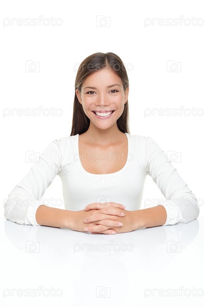 Женщина в белом сидит за столом